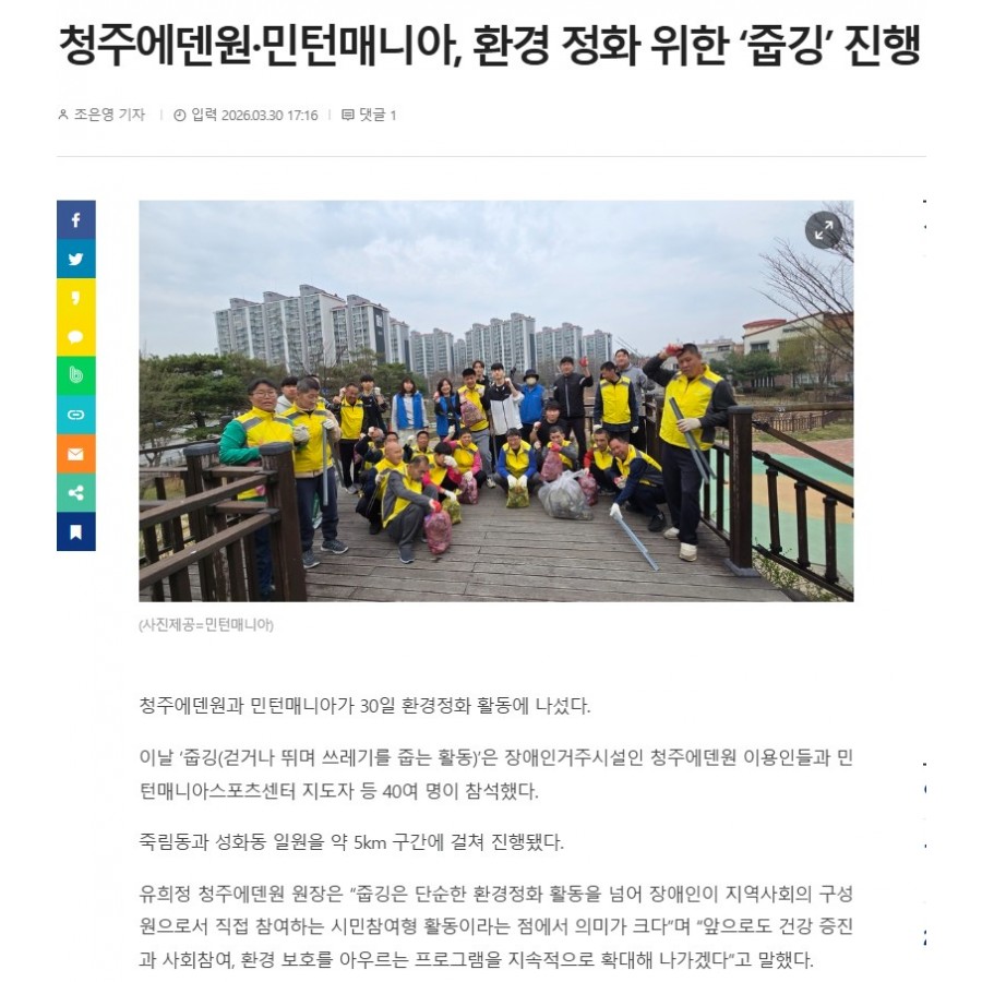 2026년 민턴매니아스포츠센터와 함께하는 줍깅프로그램
